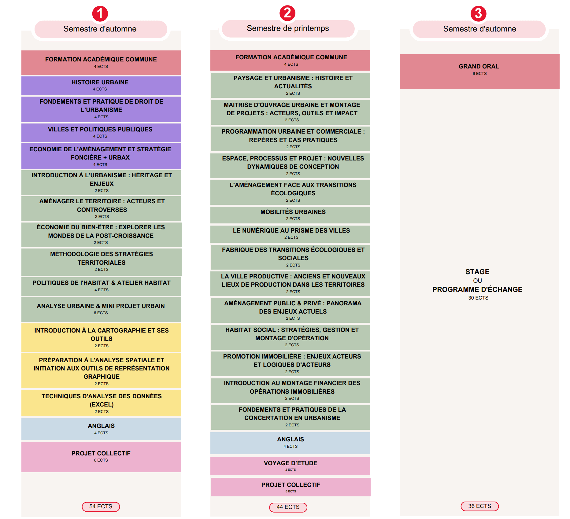 - Additional thematic courses (sustainable urban planning, public consultation, etc.) and "professional" approaches (social project management, real estate development, urban and commercial programming, etc.)