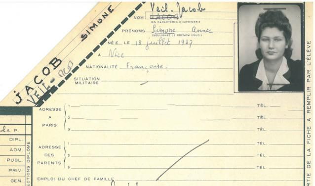 A son entrée à Sciences Po en octobre 1945, la jeune Simone Jacob, 18 ans, a déjà payé un lourd tribut à l’Histoire. Son bac, elle l’a passé en mars 1944, la veille de son arrestation par la Gestapo. Son inscription rue Saint Guillaume, elle la fait moins de six mois après son retour des camps d'extermination, où sont morts presque tous les membres de sa famille. Son statut de déportée l’autorise à s’inscrire alors que l’examen d’entrée a déjà eu lieu, “dans une conférence regroupant les étudiants qui avaient eu des problèmes pendant la guerre, raconte-t-elle dans Une vie. Tous avaient eu des histoires particulières et fortes, ce qui n’empêchait pas certains de me regarder comme un ovni : non seulement j’avais connu la déportation, mais en plus… j’étais une fille !”.