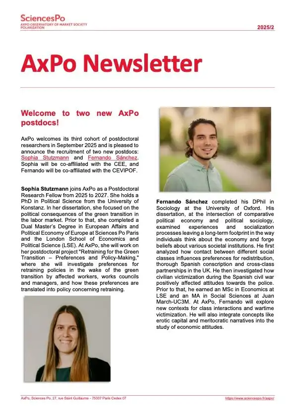 The AxPo Newsletter provides information on people and upcoming events at the AxPo Observatory of Market Society Polarization. It is published two times per year.