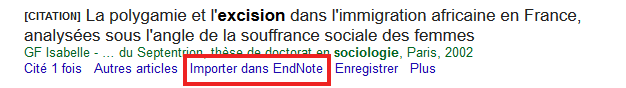 Thus, the Import into Endnote button will appear in front of each document in your result list.