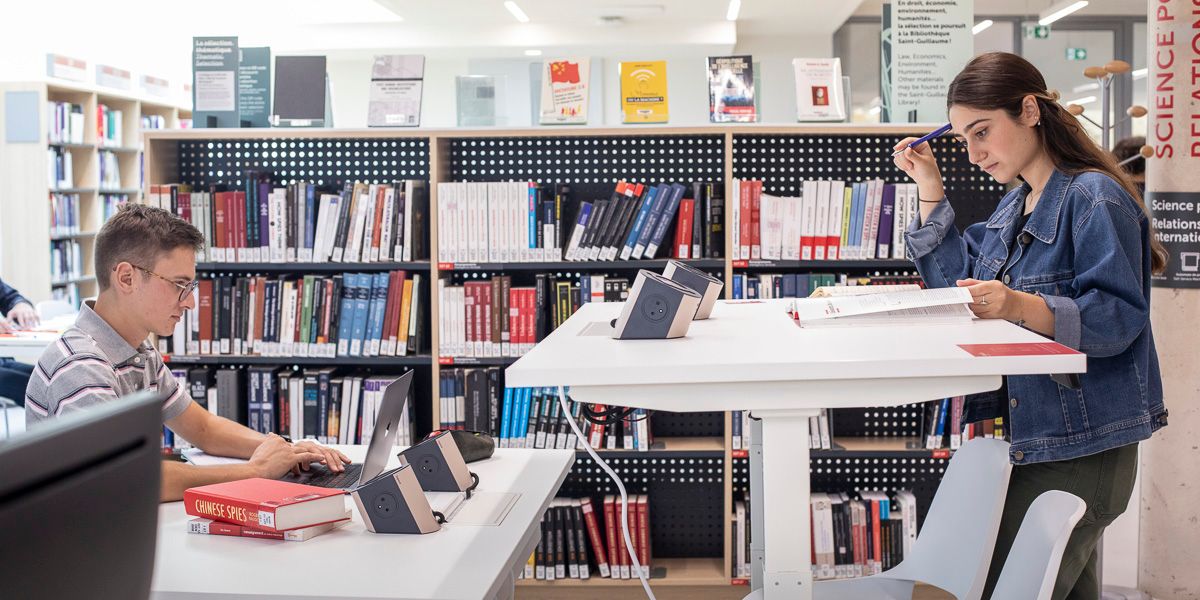 A la bibliothèque, et sur l’ensemble du campus, vous trouverez des places de travail individuelles et des espaces de travail en groupe.
