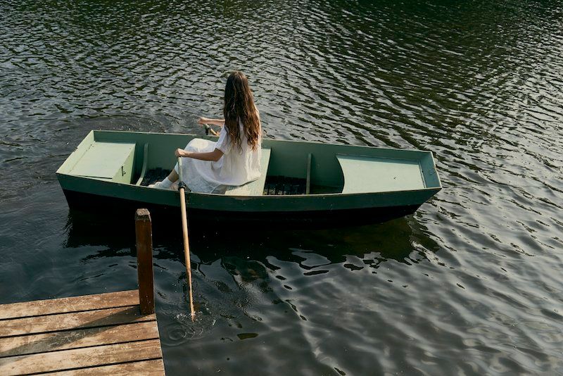 Pour la décoration, elle a suivi son instinct : « Je voulais une maison de campagne qui traverse les âges, un esprit désuet et intemporel ». Le chalet au bord de l'eau possède également un jardin très vert, une nature environnante que l’entrepreneure a souhaité mettre à l’honneur : « Je voulais mélanger les codes de l’extérieur et de l’intérieur, pour avoir une impression de dedans-dehors », raconte-elle.