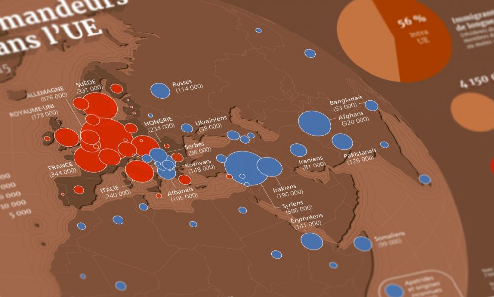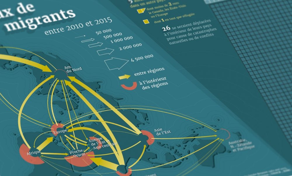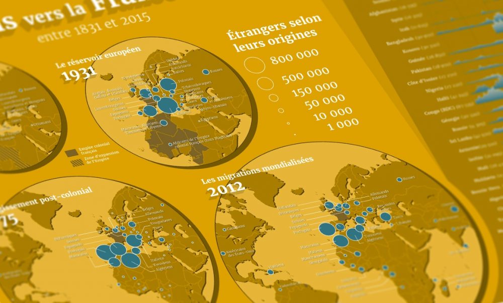 Partenaire de longue date avec l’Atelier de cartographie de Sciences Po, le MNHI a aussi exposé au festival hongrois une série de quatre posters, réalisés par l’Atelier, au sujet des migrations. Plusieurs échelles sont traitées : les migrations dans le monde, en Union européenne, en France et enfin en Hongrie, avec une volonté de proposer des images simples à interpréter, afin de porter un autre regard sur les migrations.