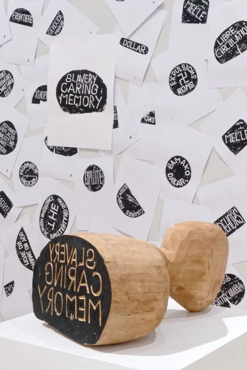 He is a contemporary artist who handles all media with great talent, and has a highly stimulating approach to art that is in tune with society, history, and memory. His work is very stimulating for my research into colonial slavery and its contemporary legacy in the arts and museums. I have already staged a number of exhibitions in collaboration with Barthélémy, including the group show Retours à l'Afrique at Bandjoun Station in Cameroon and the individual exhibitions Habiter la terre at Hab Galerie in Nantes, Picasso/Toguo at the Picasso Museum in Barcelona, and Stronger Together, which is currently on show at the Mohammed VI Museum in Rabat, Morocco.