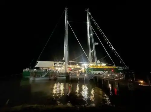 While the COP venue is full of negotiating rooms, suits and ties, Belém also hosts a variety of ‘houses’ where civil society gathers and sometimes holds its own negotiations. One of these is the People’s House, located on the campus of the University of Belém, where students were given two weeks off to allow for its setup. There was a huge market where local and indigenous communities sold artisanal garments and food, and performed dances and music. The campus is also located by the Amazon River, where some of the flotillas that came sailing to the COP were docked, including the Greenpeace Rainbow Warrior boat.
