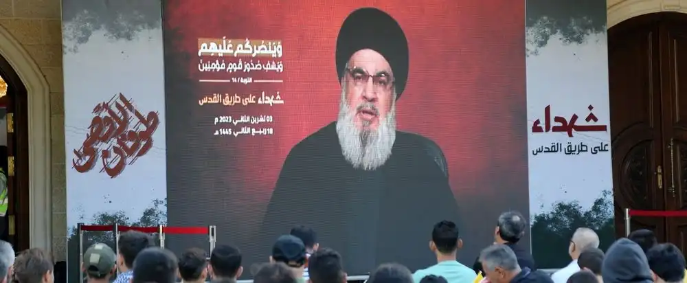 Photo 4 : Beyrouth, 8 novembre 2023, le chef du Hezbollah Sayyed Hassan Nasrallah. Crédit : mohammad kassir pour Shutterstock.