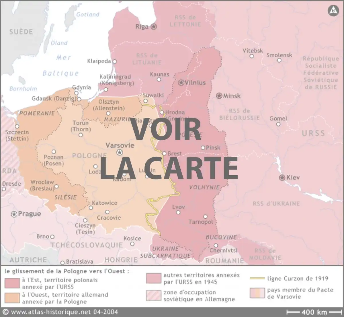 Quant à la frontière orientale de la Pologne, son tracé fut décidé pendant la conférence de Yalta (4-11 février 1945), et dessiné conformément aux souhaits de Staline : la Pologne y perd 179 000 kilomètres carrés, quasiment la moitié de son territoire.