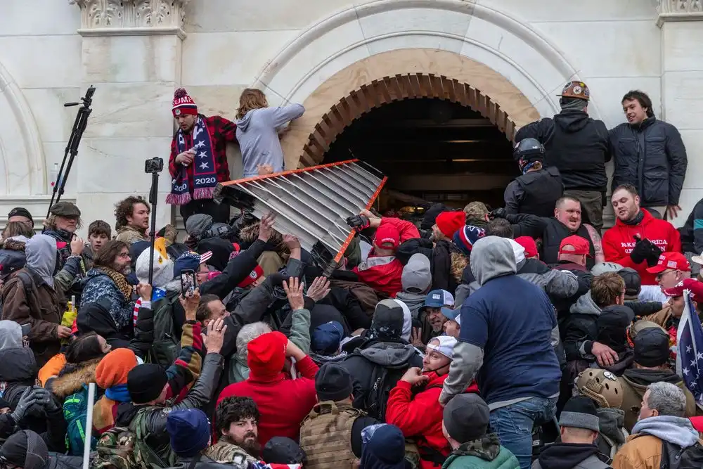 Photo : Lev Radin, Washington, DC-January 6, 2021: Rioters clash with police trying to enter Capitol building through the front doors, Shutterstock