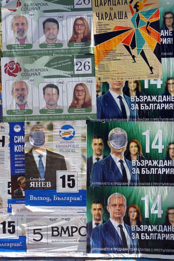 Photo 2 : Varna, affiches de différents candidats aux élections législatives du 2 octobre 2022. © photo : Pres Panayotov pour Shutterstock.