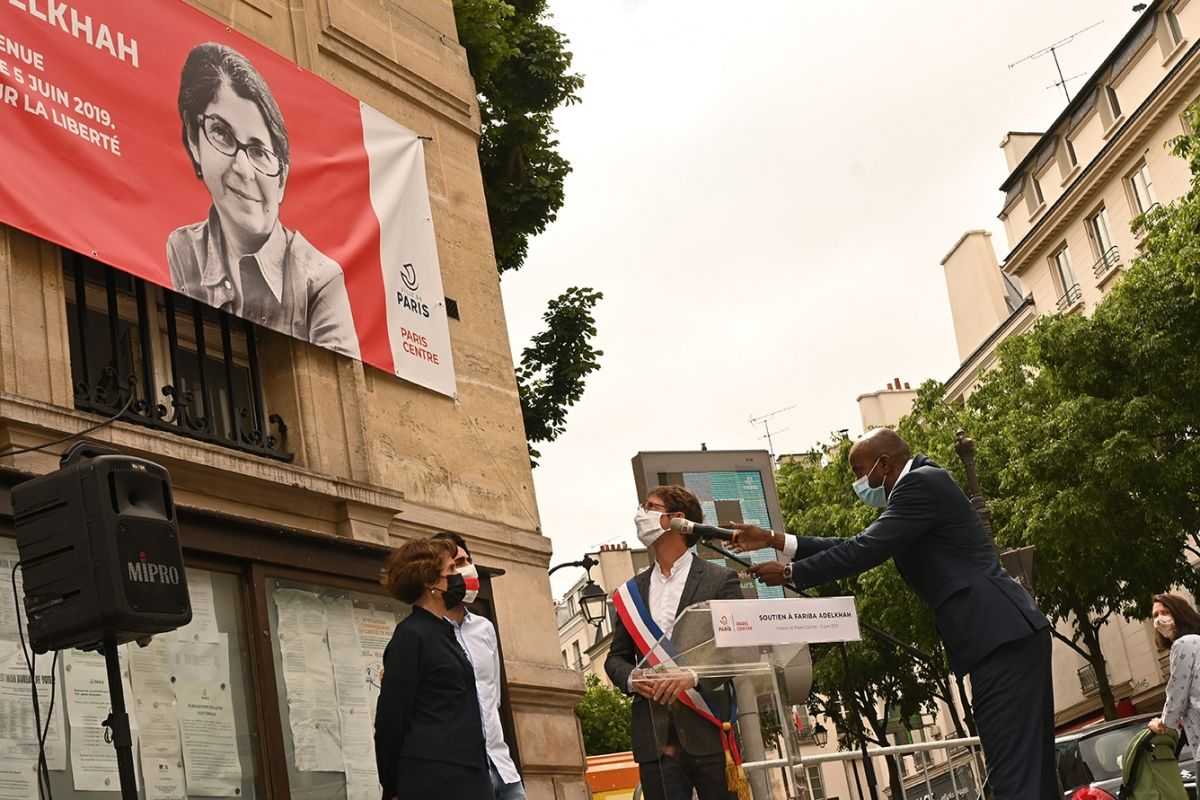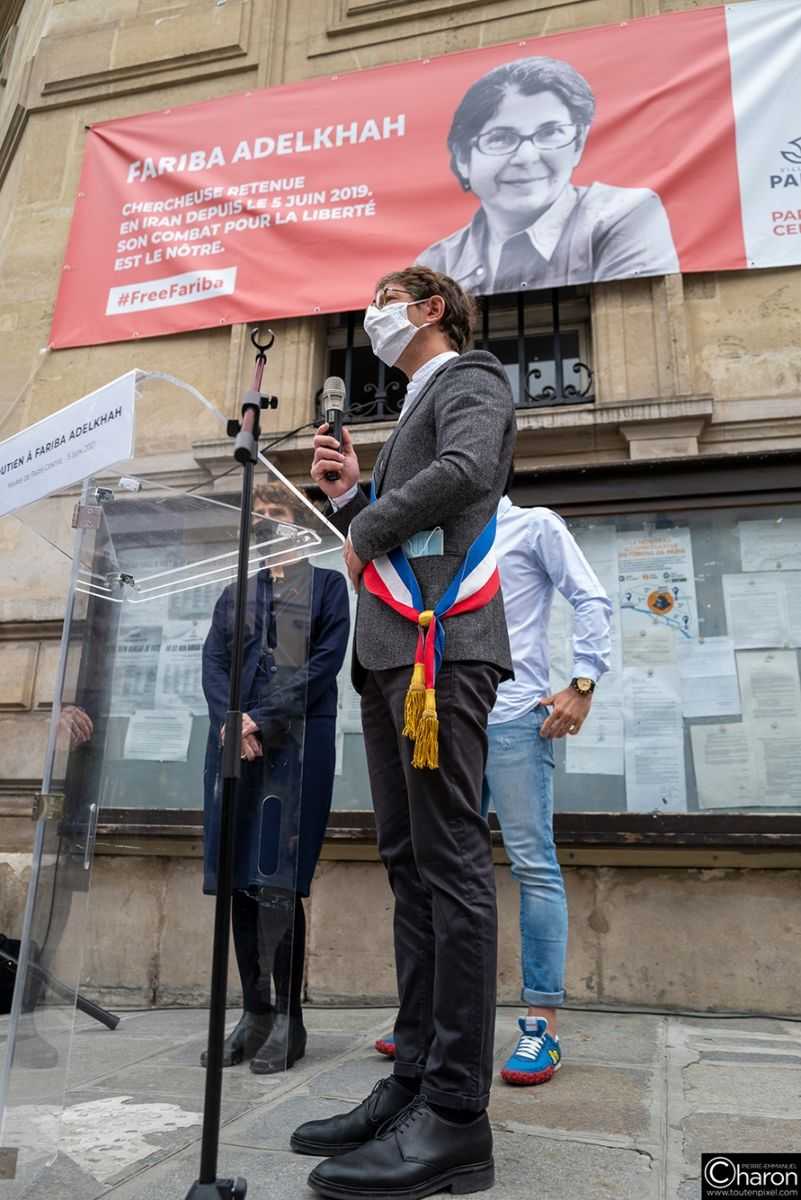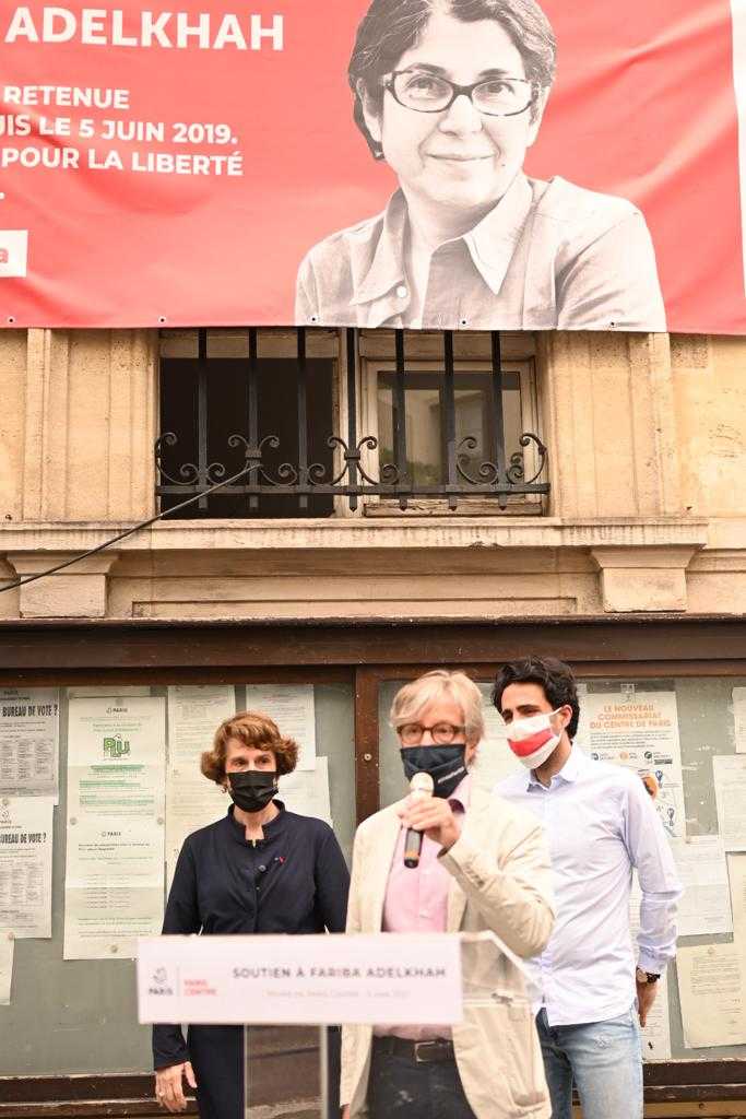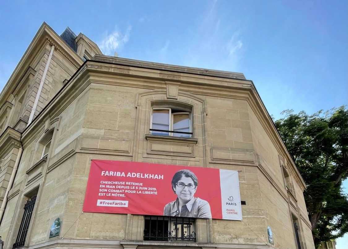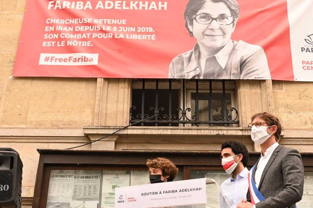 Le 5 juin 2021, la Mairie de Paris a accroché une banderole pour marquer son soutien au combat de Fariba et demander sa libération immédiate ainsi que celle de tous les chercheurs emprisonnés.