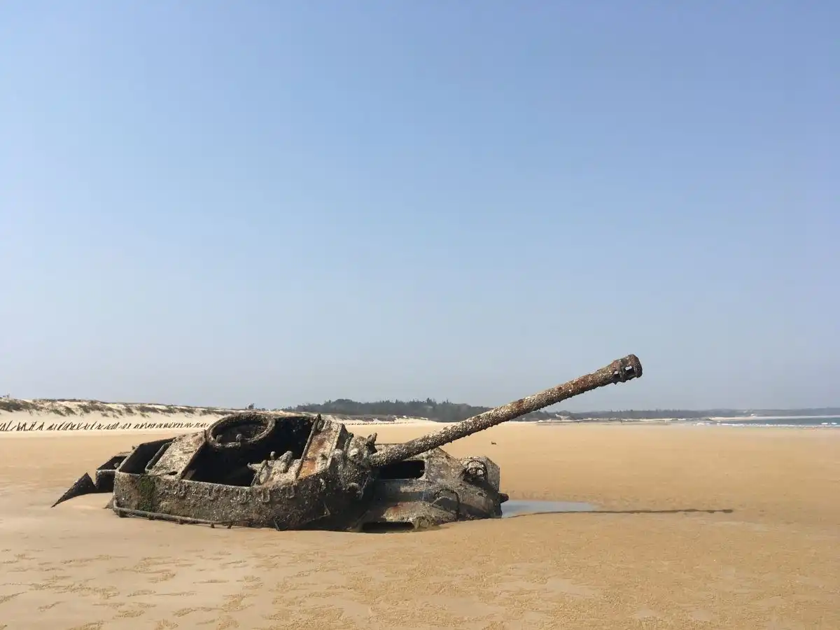 Photo 3 : Tank américain échoué depuis les années 1950 sur la plage d’Oucuo, Kinmen. 13 mars 2018. © : Alexandre Gandil.