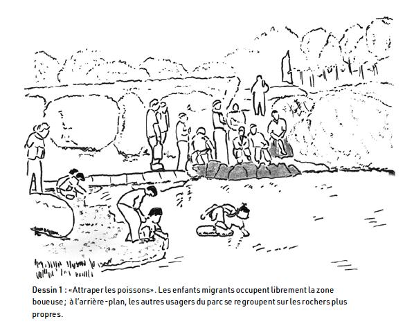 Photo de couverture : Des enfants dans le quartier des migrants improvisent un jeu, autour des ouvertures dans le mur d'une usine adjacente. Dessin d'un des jeunes enquêtés, à partir d'une photo de l'auteur. Le dessin ne figure pas dans le livre.