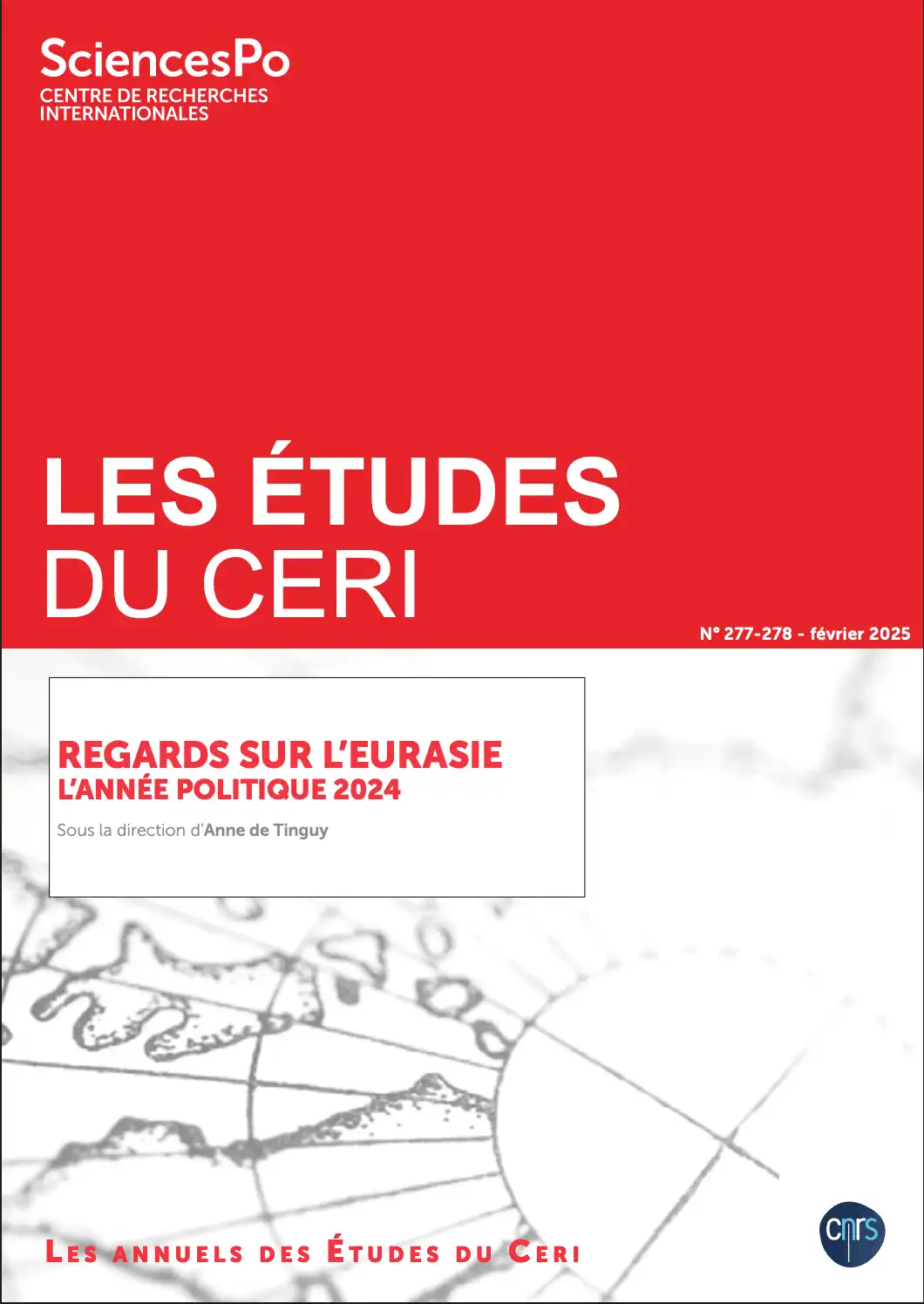 Regards sur l’Eurasie. L’année politique est une publication annuelle du Centre de recherches internationales de Sciences Po (CERI) dirigée par Anne de Tinguy. Elle propose des clefs de compréhension des événements et des phénomènes qui marquent de leur empreinte les évolutions d’une région, l’espace postsoviétique, en profonde mutation depuis l’effondrement de l’Union soviétique en 1991. Forte d’une approche transversale qui ne prétend nullement à l’exhaustivité, elle vise à identifier les grands facteurs explicatifs, les dynamiques régionales et les enjeux sous-jacents.