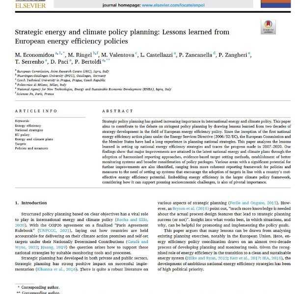Strategic energy and climate policy planning: Lessons learned from European energy efficiency policies