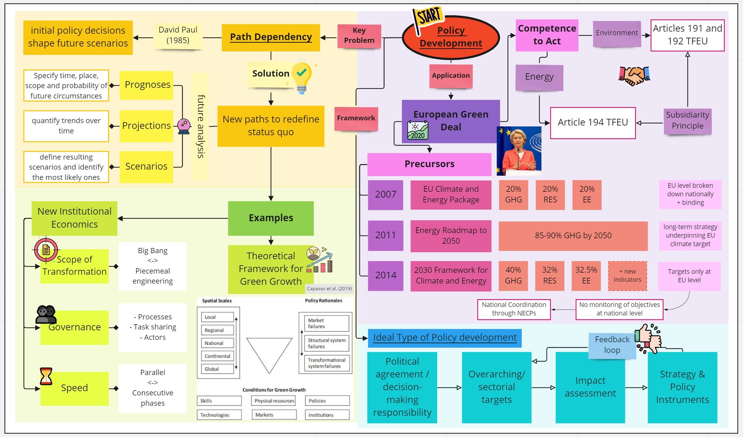 The European Green Deal did not appear out of thin air. Indeed, it derives its legitimacy and competence to act from Articles 191, 192, and 194 TFEU. Moreover, it is the product of a culmination of predecessors developing similar ideals. The EU Climate and Energy Package (2007), the Energy Roadmap to 2050 (2011), and the 2030 Framework for Climate and Energy (2014) all outline similar goals. Yet, these precursors are far from perfect. For instance, although the 2030 Framework may set up ambitious goals for some, its targets remain EU-level targets. This results in significant discrepancies amongst nations in regards to their contribution and renders monitoring very difficult.