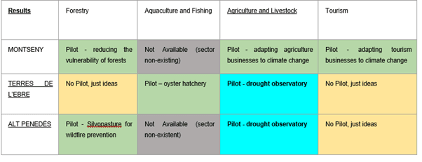 Indeed, the project started with territorial studies for the identification of risks, passed through the set-up of forums where stakeholders could discuss and select actions to adapt, and ended with a coordinated implementation of six pilot actions that you can see in the table below (Layman Report, 2020).