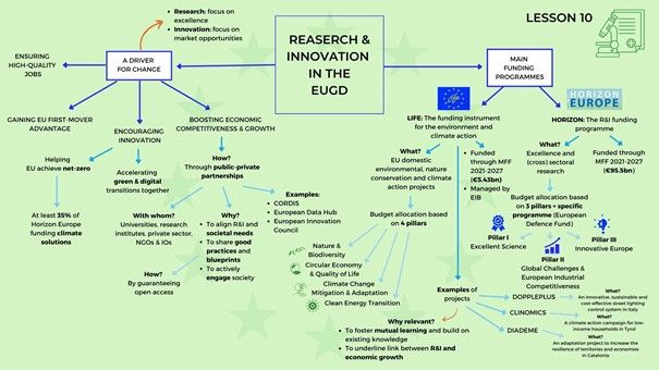 Research and Innovation (R&I) are at the core of the European Green Deal. Without their contribution, the transition would be slow-paced. R&I are key drivers of transformative change by spurring innovation, deploying solutions, and engaging societies. For instance, through public-private partnerships, the European Union (EU) can deepen and speed up the green and ecological transitions while ensuring high-quality jobs and the quality of life of its citizens.