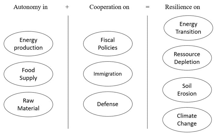 Ways to achieve resilience have been (Martin, 2019) and should further be extensively studied. It needs to be said it does not simply rely on food, energy, or even technological autonomy. Systemic resilience will require a high level of cooperation.