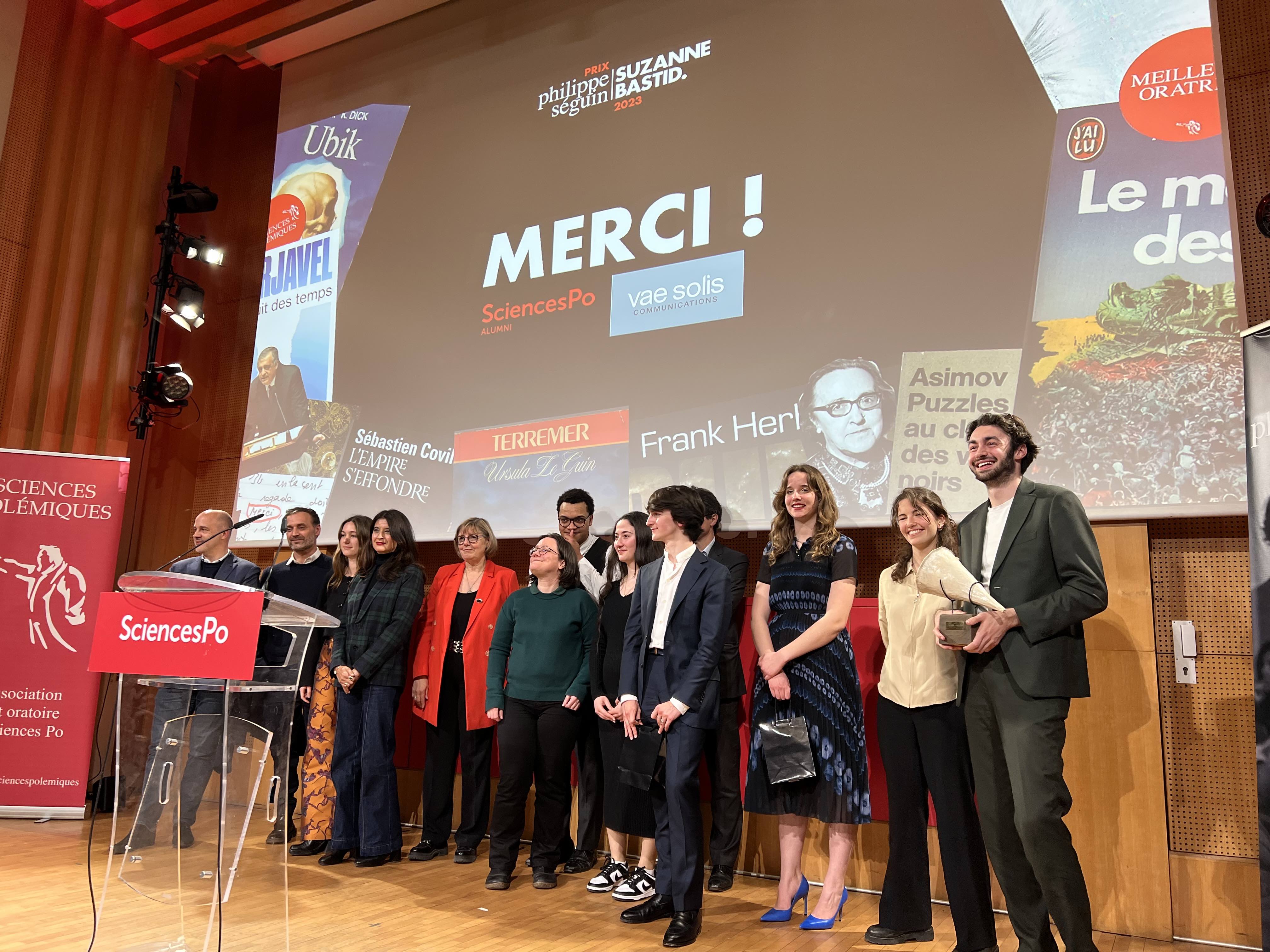 14 avril 2023. Six finalistes ont concouru pour remporter la finale de l'édition 2023 du Prix Philippe Seguin - Suzanne Bastid, renommé ainsi cette année en hommage à la première femme à avoir été nommée professeure de droit international à Sciences Po en 1946.
