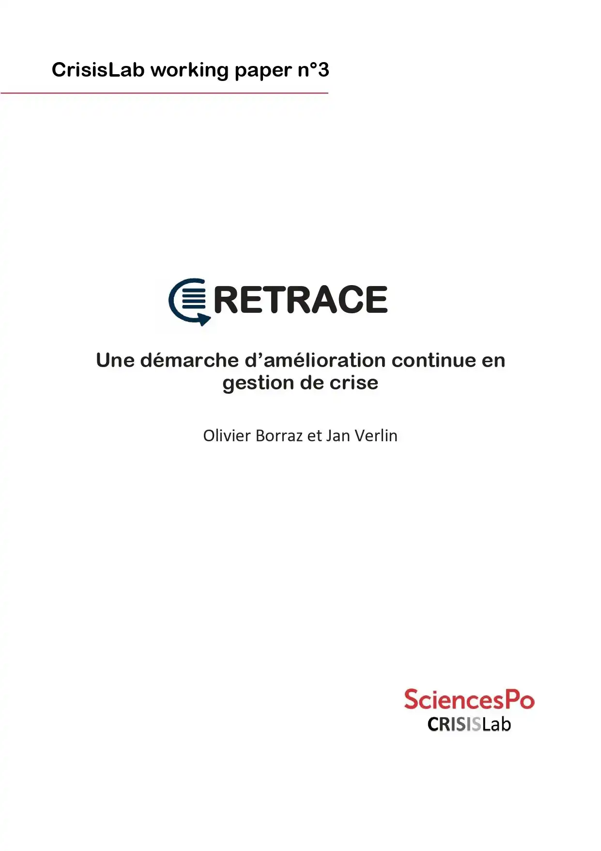 Borraz, Olivier et Verlin, Jan (2025). Retrace. Une démarche d'amélioration continue en gestion de crise : Sciences Po (CrisisLab Working Paper, 3).