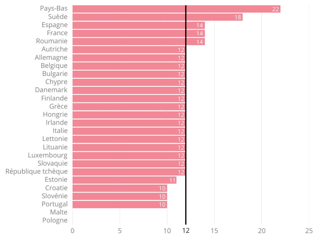 - Le royaume des Pays-Bas, pays de 18 millions d’habitant·es, propose l’un des délais d’interruption de grossesse les plus longs au monde. L’avortement n’y est plus une infraction depuis 1981, date de la Wet afbreking zwangerschap, loi sur l’interruption volontaire de grossesse. Depuis 1984, les femmes peuvent avorter sur simple demande jusqu’à 22 semaines de grossesse.