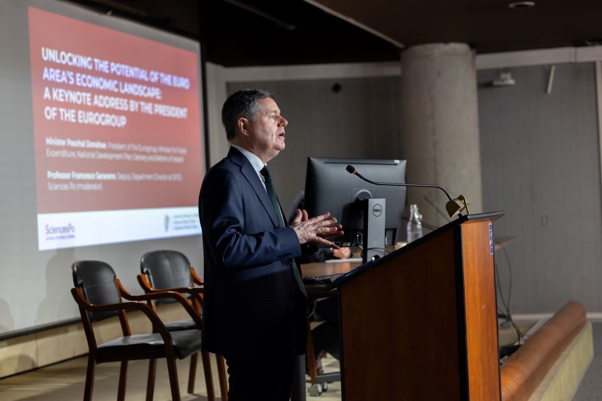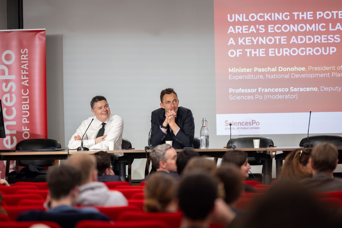 Après la présentation, une grande partie de la conférence a été consacrée à de riches échanges avec les étudiants de Sciences Po, au cours desquelles le ministre Donohoe a exposé sa vision de l'avenir de la zone euro.