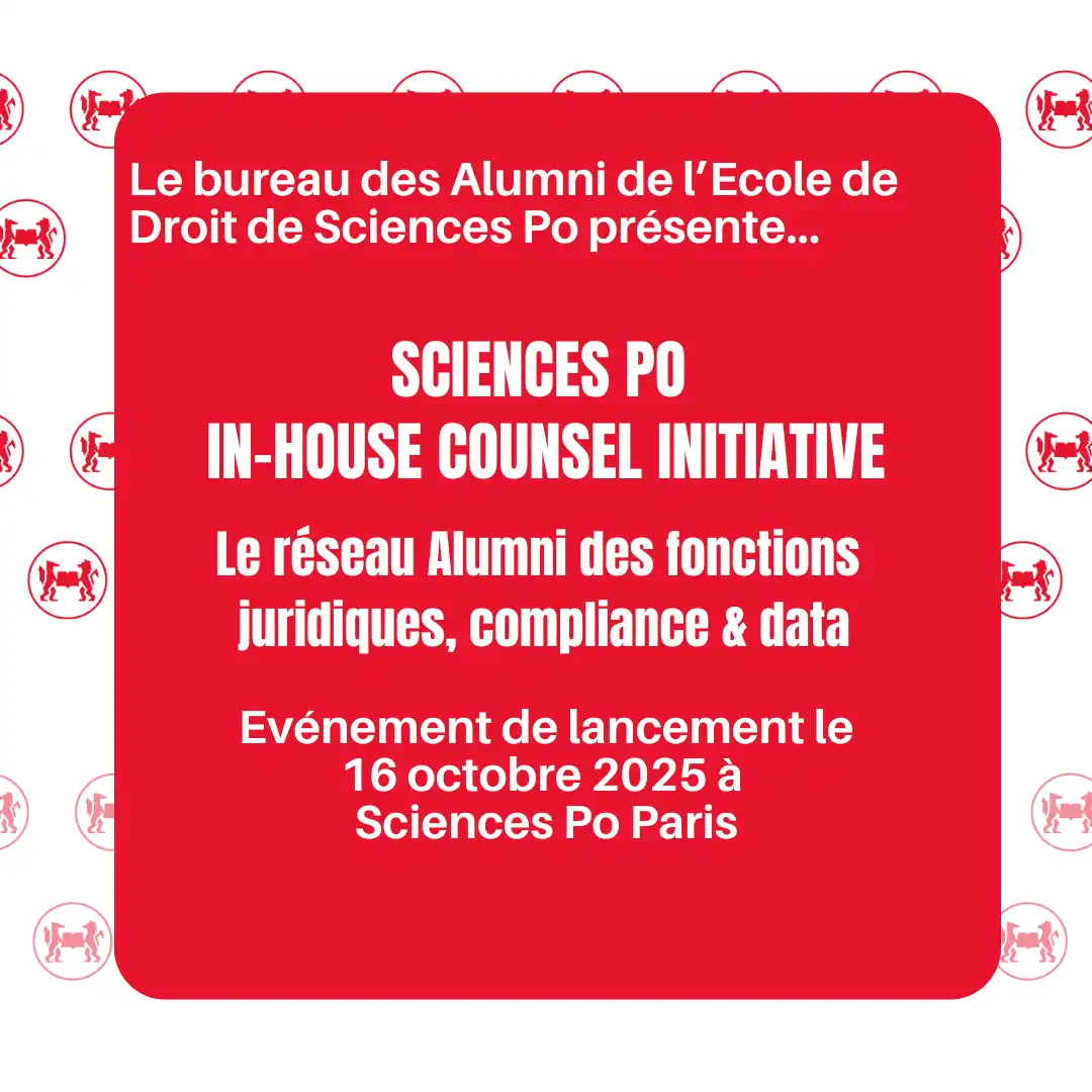 Dans le cadre de sa mission d’animation de la communauté des diplômés, le Bureau des Alumni de l’École de droit a le plaisir de vous convier au premier événement de la Sciences Po In-House Counsel Initiative.