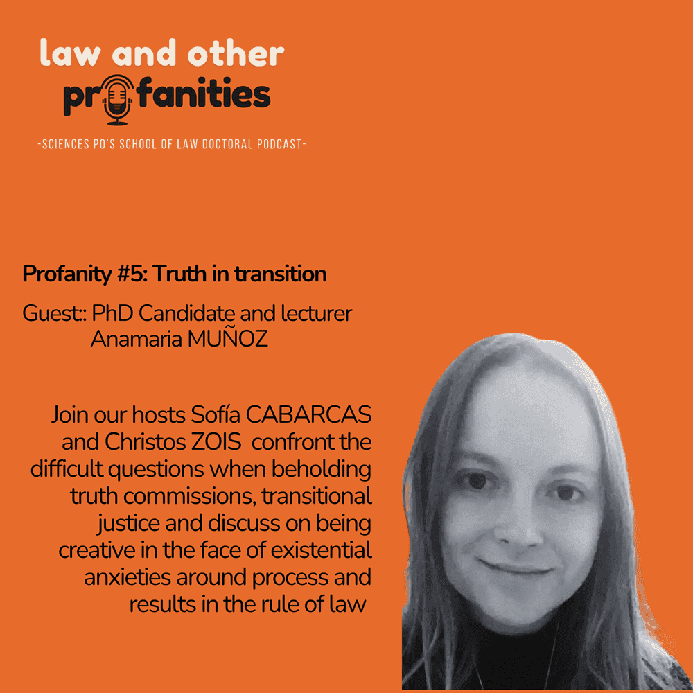 This episode features Anamaria Muñoz, a PhD candidate at the Sciences Po Law School, and is co-hosted by PhD candidates Sofia Cabarcas and Christos Zois.