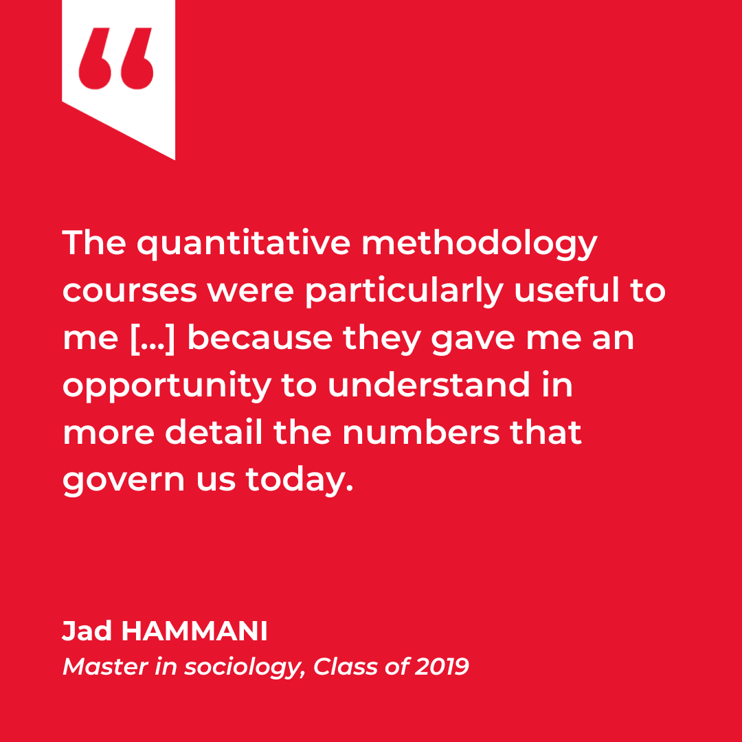 I really enjoyed the courses on the classics of sociology, which gave me a rich theoretical background. What's more, the courses on the sociology of public action and the sociology of science, which were at the heart of my Master's dissertation, made a real impact on me and provided useful keys to understanding the world, particularly in the context of the Covid crisis.