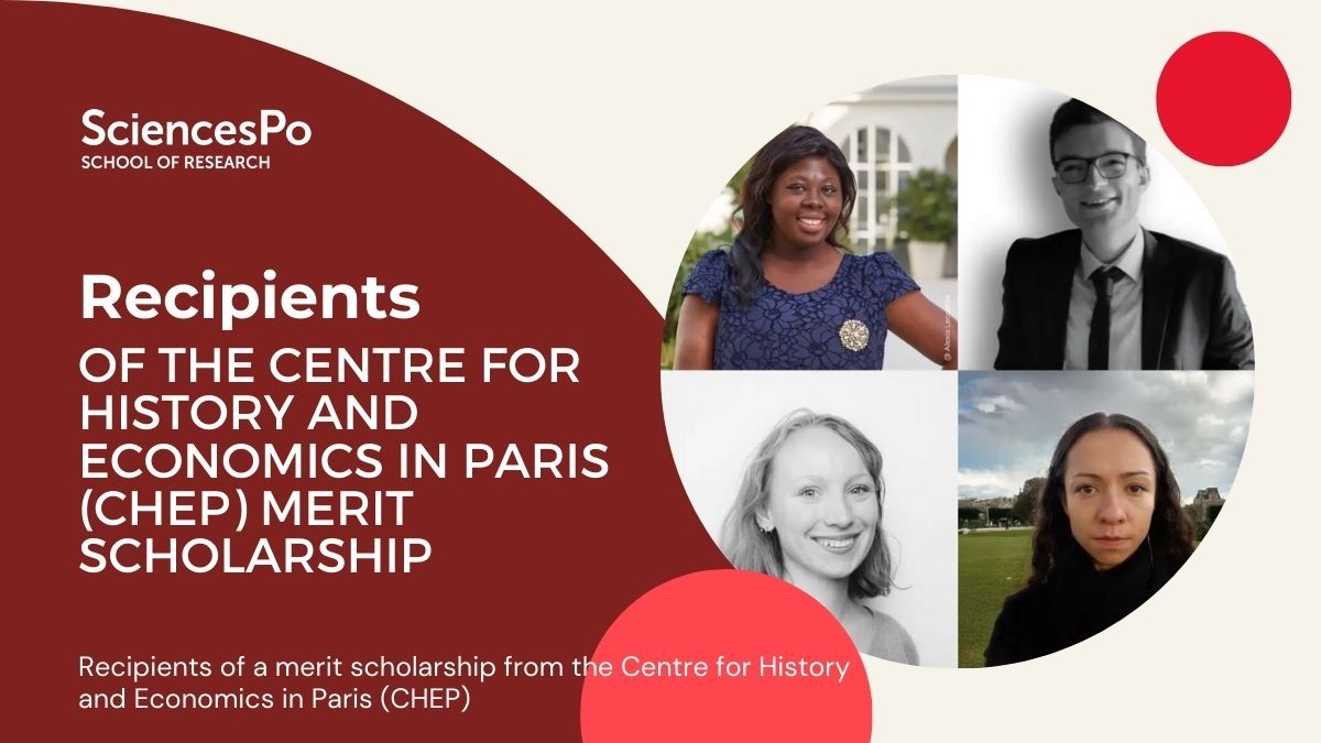 Congratulations to the four PhD students from the Sciences Po Centre for History, Natalia Lanko, Lucile Truffy, Vincent Harmsen and Ebunoluwa Iyamu, winners of the scholarship of excellence from the Centre for History and Economics in Paris (CHEP).