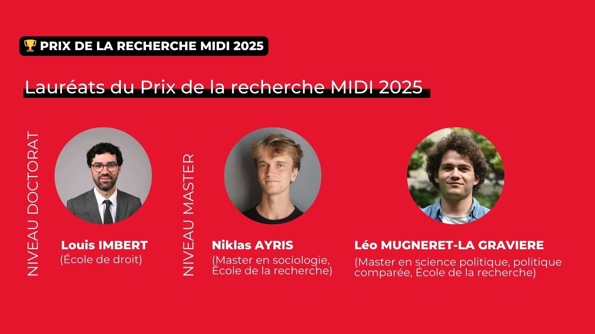 Le collectif interdisciplinaire Migration et Diversité (MiDi) de Sciences Po a le plaisir d'annoncer les lauréat·es de son Prix de la recherche MiDi 2025.