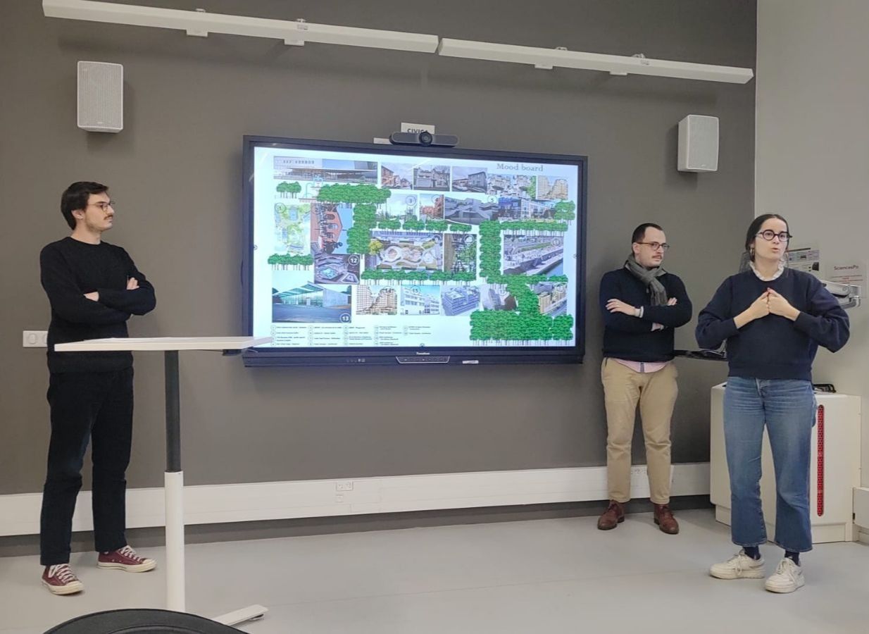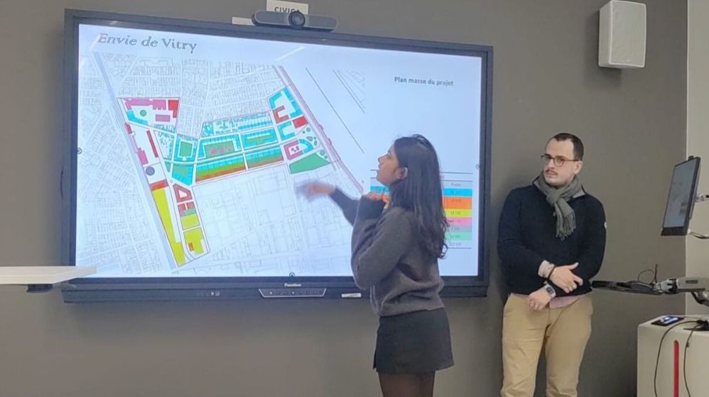 Chaque année, le « mini projet urbain » offre aux étudiants du Master Cycle d’urbanisme une immersion unique dans la pratique du projet urbain. Du 6 au 9 janvier 2025, cet exercice a mobilisé toute la promotion autour de la conception d’un projet urbaine, en seulement quatre jour, à partir d’un site réel en pleine mutation. La restitution s’est faite devant un jury composé de Patricia Pelloux et Ludovic Pepion, Tommaso Vitale, Ilaria Milazzo, Marco Cremaschi, Bertrand Vallet, et de deux personnalités invitées, François Taroni et Théodore Monin, responsables d’opérations à la Sadev94.