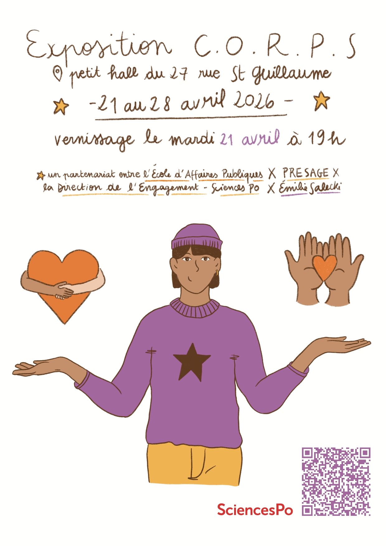 This exhibition was conceived and created in spring 2026 by five students as part of the Certificate in Women-Men Equality and Public Policy at Sciences Po Paris, in partnership with the Student Health Service and the SGBV Team. Designed as a transferable tool intended to circulate beyond Sciences Po, it focuses on education in emotional, relational, and sexual life (EVARS).