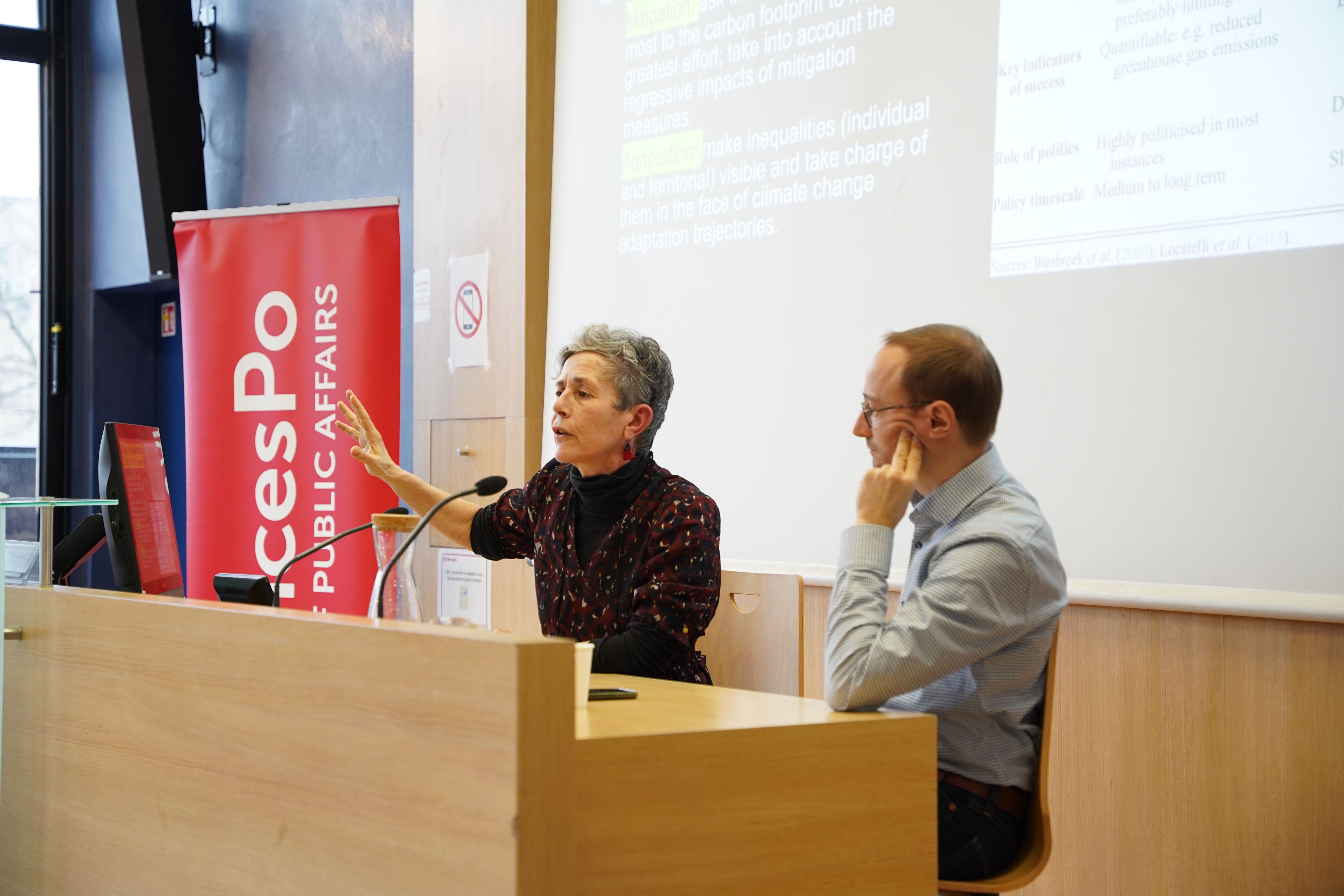 The afternoon continued with a discussion featuring Nathalie Blanc, Director of Research at CNRS and Director of the Centre de Politique de la Terre at Université Paris Cité, who presented "A territorial study of adaptation to climate change : the Paris metropolis", and Frédéric Ducarme, General Secretary of the Overseas Chair at Sciences Po, on the theme of "Adaptation to climate change : French overseas territories as a source of innovation".