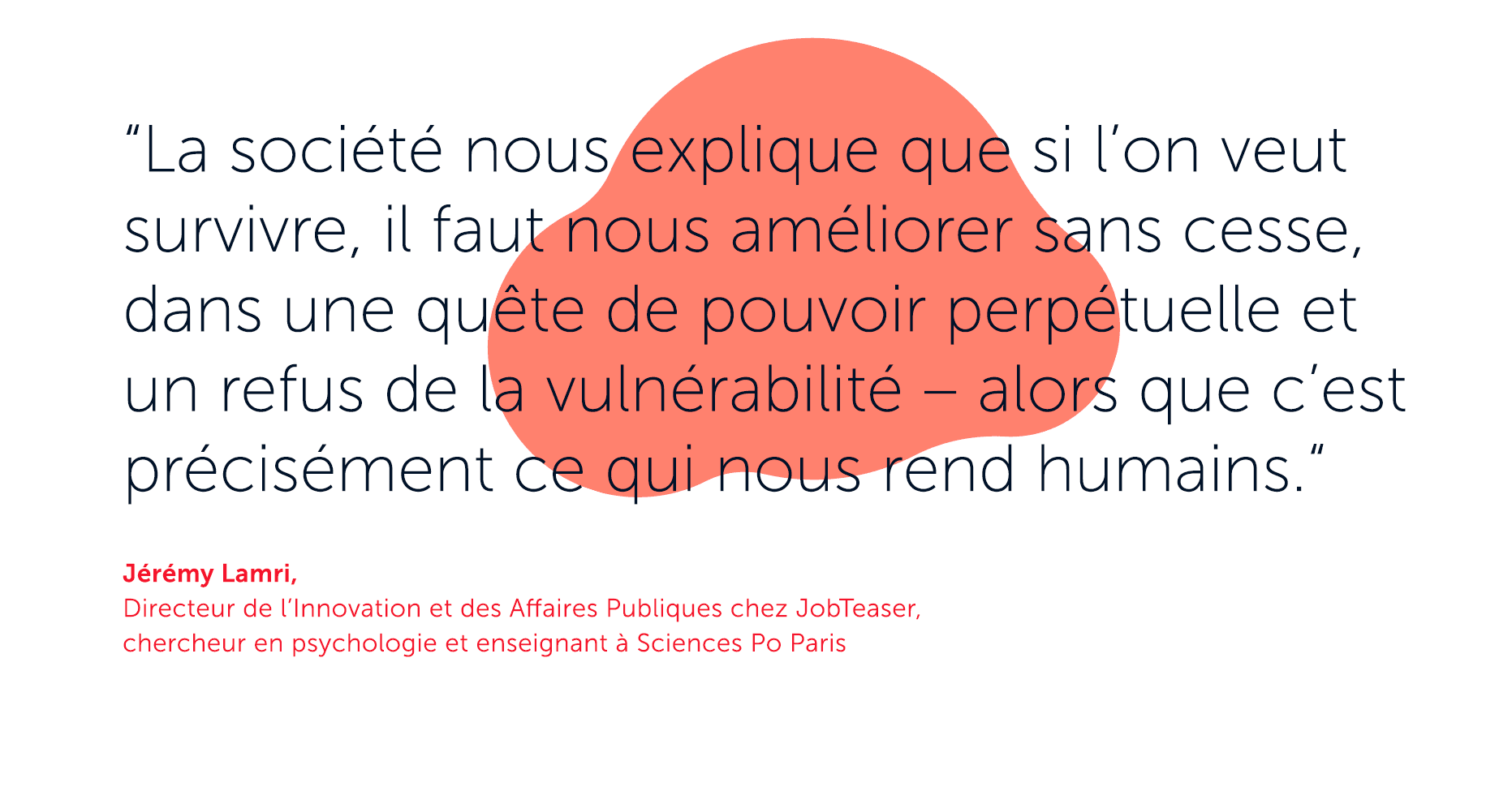 - C’est tout le contraire. Je veux nous sauver. Je crois que le vivre-ensemble ne peut fonctionner que par l’effort collectif. En travaillant les uns avec les autres, en s’aidant les uns avec les autres. Une intelligence globale au service du groupe.”