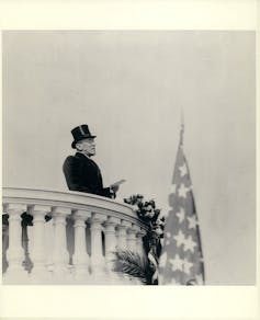 Ainsi naquit à Washington le récit géopolitique de la guerre à l’échelle du monde. Non pas un simple récit national, mais bien un récit géopolitique, c’est-à-dire une projection internationale dans laquelle les États-Unis occupaient une position singulière. L’Amérique se dotait de la mission de sauver la démocratie mondiale et ce faisant mettait en scène une confrontation d’ordre universel entre le Bien et le Mal, « les bons et les méchants », représentés respectivement par les forces alliées démocratiques, d’une part, et les puissances centrales autocratiques, d’autre part.