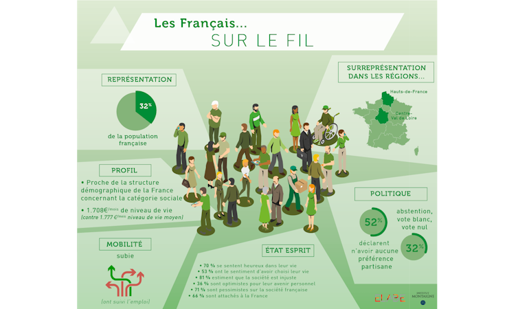Sociologiquement, les « Français sur le fil » sont à l’image de la structure sociodémographique de la France en termes d’âge et de catégories socio-professionnelles, avec une légère surreprésentation des classes moyennes inférieures et des classes populaires. C’est parmi eux que l’on trouve la proportion la plus importante de locataires.