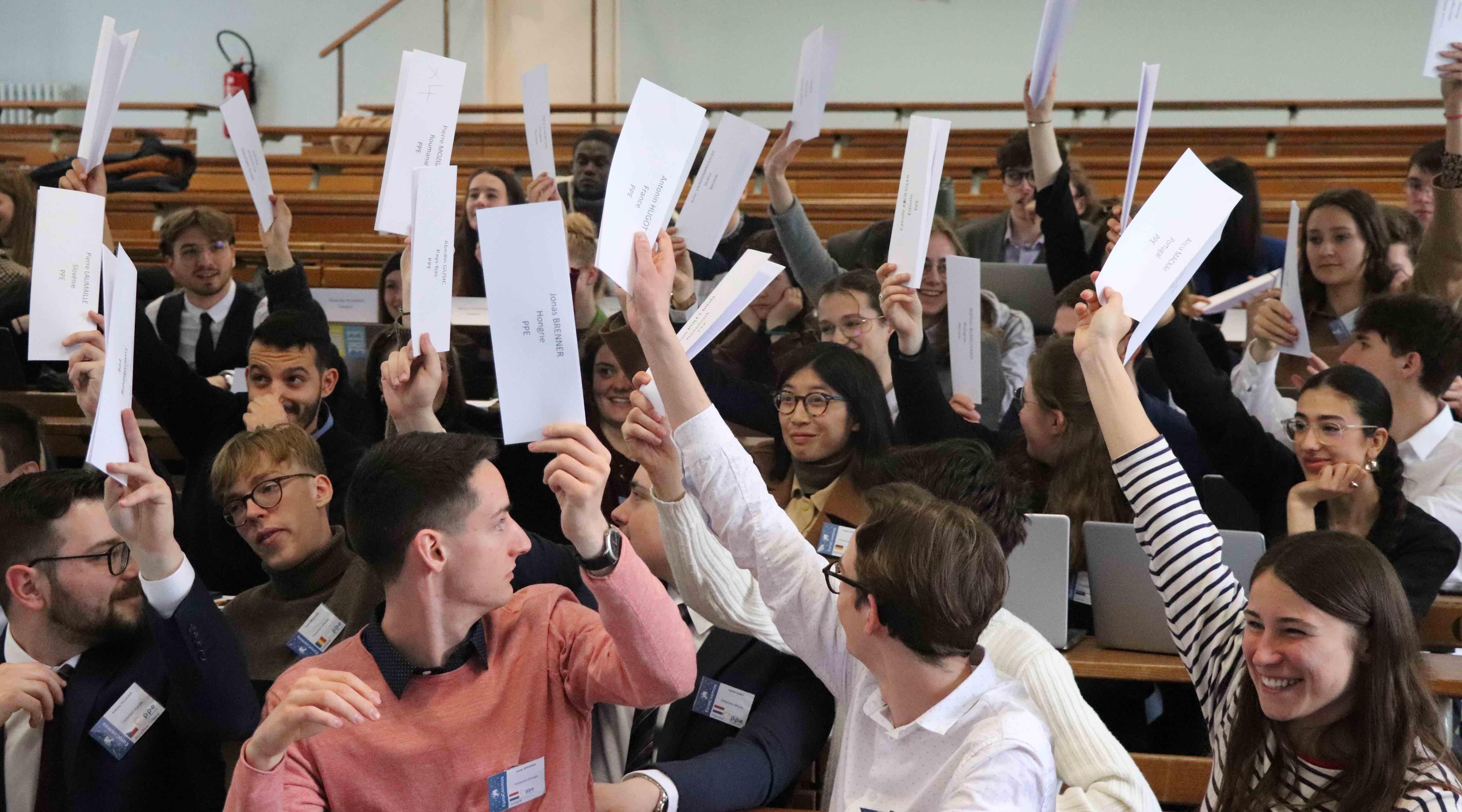 Pendant un week-end, les étudiants ont endossé le rôle d’un eurodéputé ou d’un ministre européen pour débattre et amender des propositions de directives au sein de trois commissions : Europe de la Défense, Souveraineté énergétique européenne ou Législation des frontières européennes.