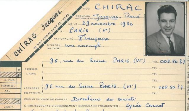 - Dossier étudiant de Jacques Chirac - Mission Archives de Sciences Po