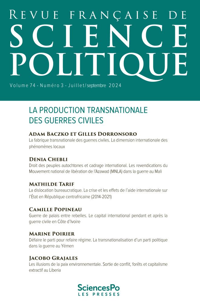 Depuis la fin de la guerre froide, les guerres civiles ne se jouent plus uniquement à l’intérieur des frontières d’un pays. De l’Afghanistan à la Syrie, du Mali à la Centrafrique, en passant par la Côte d’Ivoire, ces conflits sont profondément traversés par des dynamiques internationales : effets des normes globales, interventions de bailleurs de fonds, présence d’ONG, d’entreprises multinationales et d’acteurs extérieurs. Ce nouveau numéro de la Revue française de science politique propose un renversement de perspective : et si ces guerres nous en disaient plus sur le fonctionnement du monde que sur l’effondrement des États ? En mettant en lumière les logiques transnationales à l’œuvre, les auteurs révèlent comment ces conflits participent à la recomposition des rapports de pouvoir, tant localement qu'à l’échelle globale.