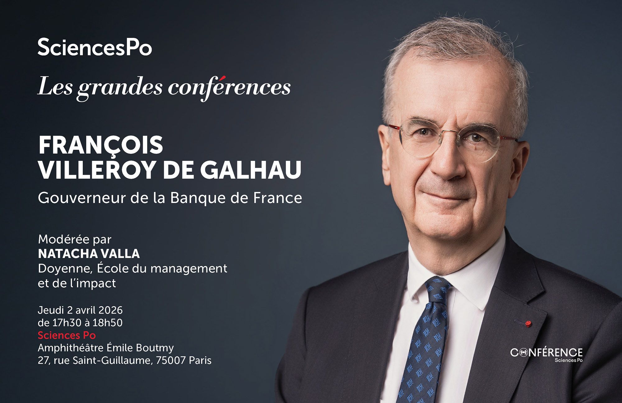 Sciences Po a l’honneur d’accueillir François Villeroy de Galhau, Gouverneur de la Banque de France depuis 2015 et figure majeure de la politique monétaire européenne, pour une Grande Conférence.