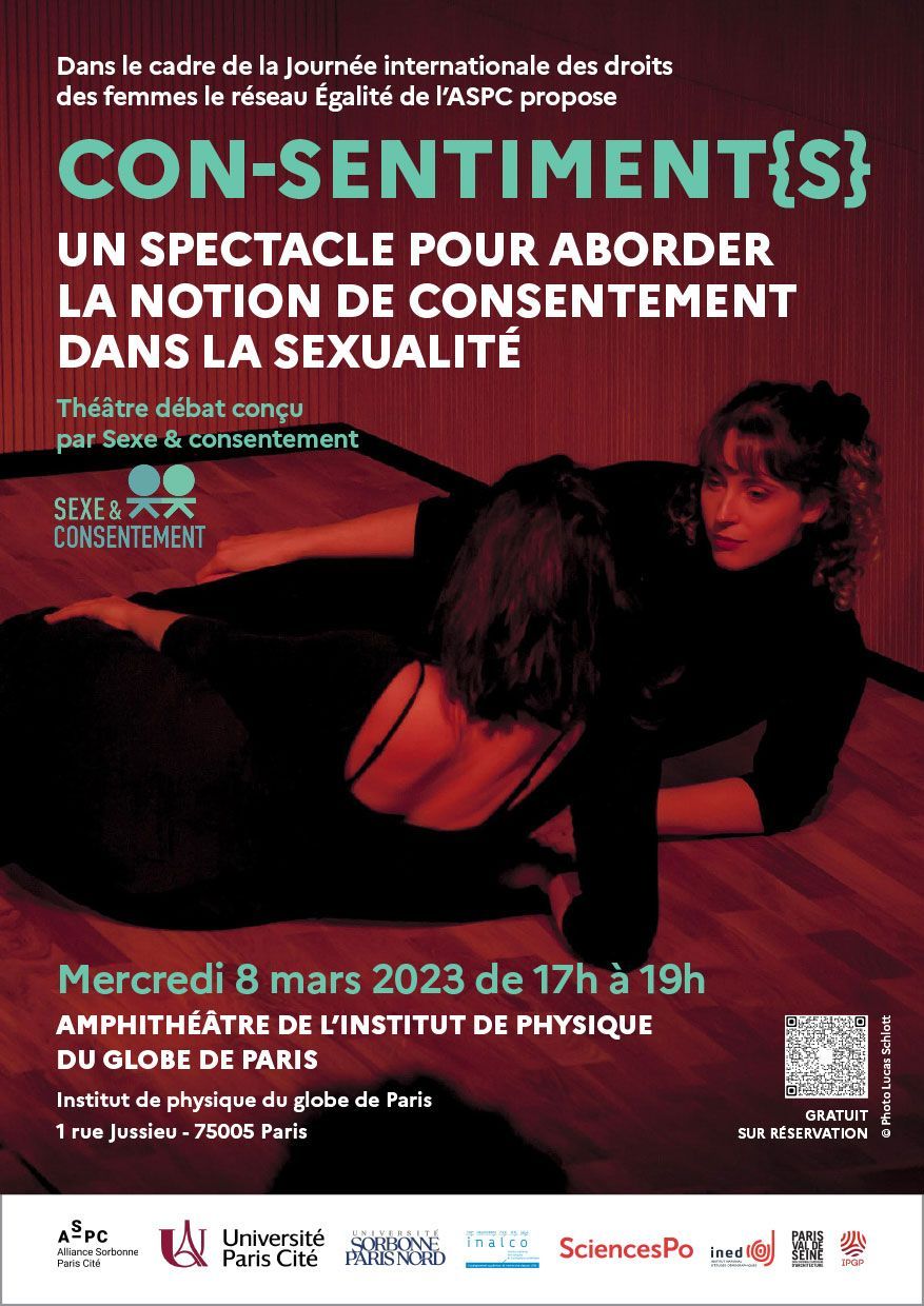 A l’occasion de la journée internationale pour le droit des femmes, Sciences Po en partenariat avec le réseau Égalités de l’alliance ASPC organise conjointement un spectacle-débat autour de la pièce de théâtre « Con_sentiments », de la Compagnie Sexe et Consentement. Cette pièce aborde la notion de consentement à travers le traitement médiatique des violences qu’a subi Maria Schneider pendant le tournage du film Un Dernier Tango à Paris .