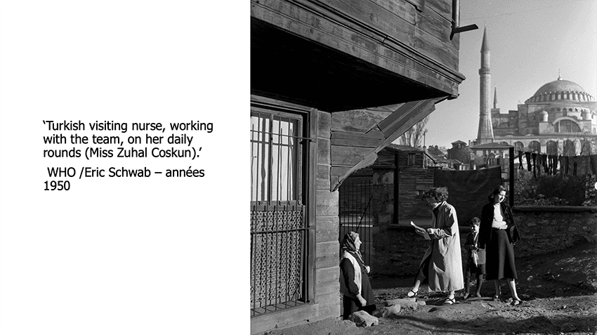 Confrontée à un accès limité aux archives en Turquie, Léa Delmaire s'arrête sur un corpus de photos de l'OMS, représentant notamment des infirmières investigratrices, symboles de la lutte contre la tuberculose et de la modernité turque...