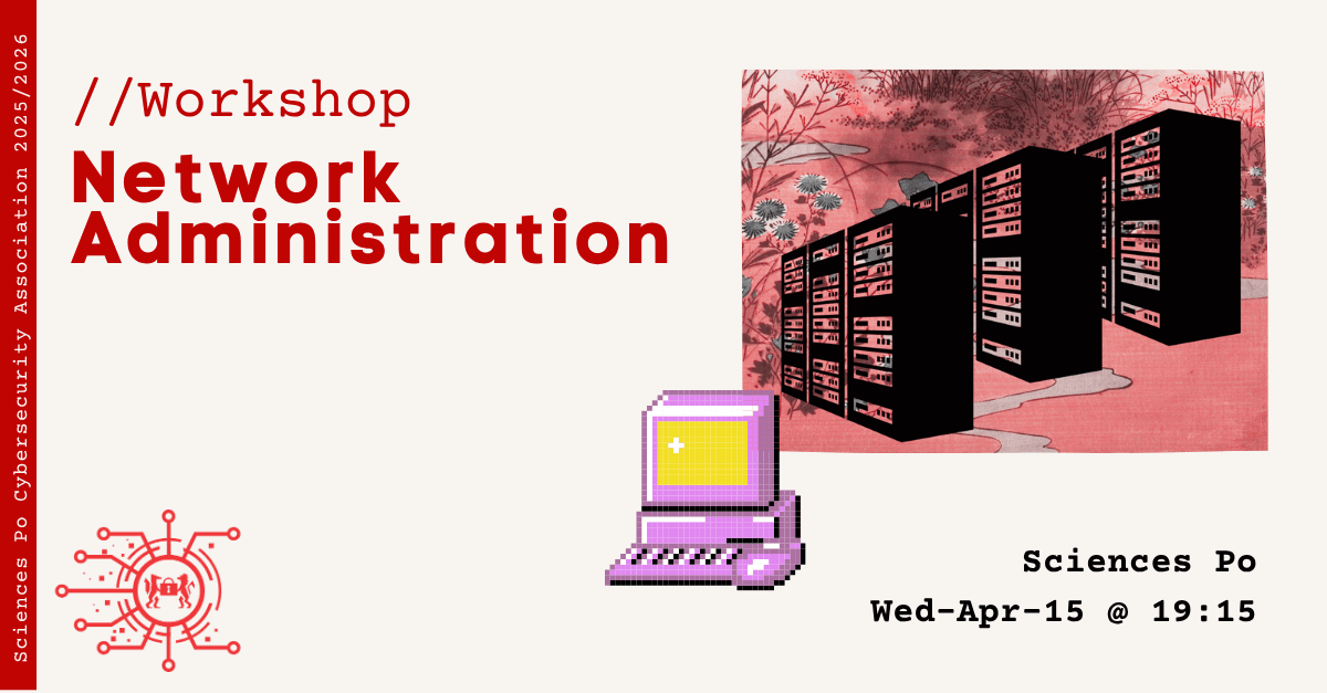 Sciences Po Cybersecurity AssociationWe’re hosting a Network Administration workshop on Wednesday, April 15th at 19:15 @ Sciences Po.