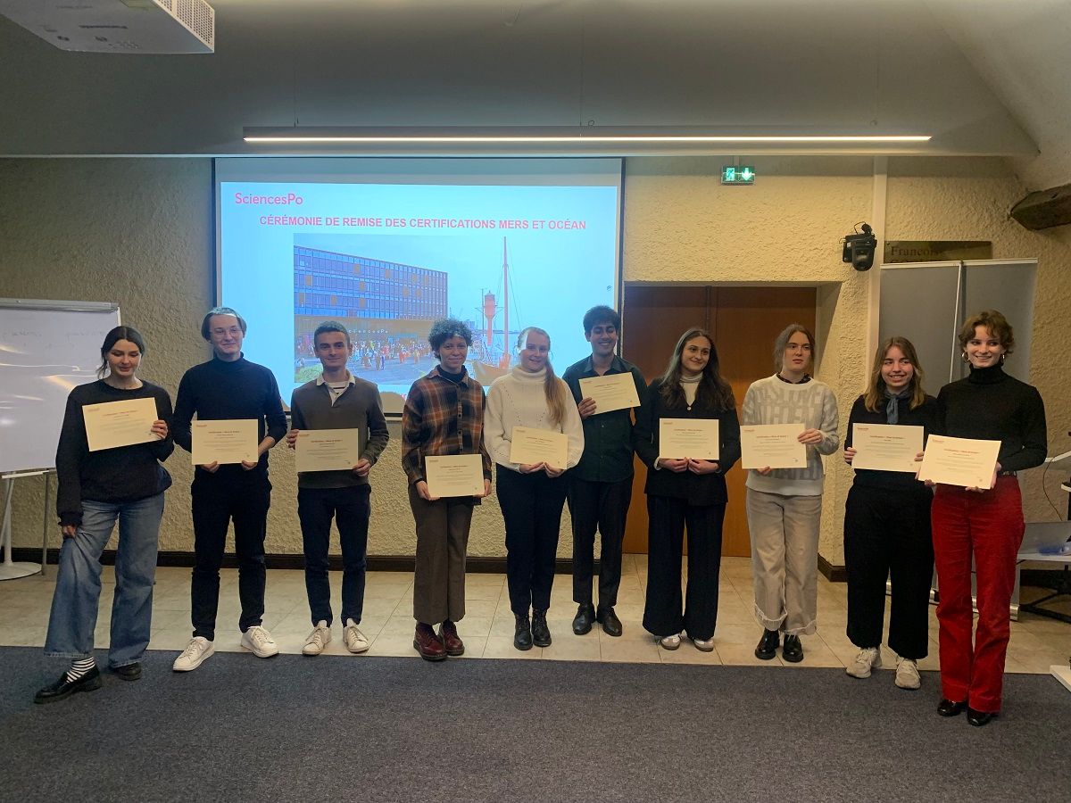 In February 2025, 15 students from Le Havre and Poitiers, graduates of the Undergraduate College, were awarded the “Seas and Oceans Certification” by Jeanne Lazarus, Dean of the Undergraduate College, and Charlotte Halpern, Director of the Institute for Environmental Transformations. The ceremony takes place in the year leading up to the third United Nations Conference on the Oceans, to be held in Nice in June, at which 10 Sciences Po students will be taking part as interns. Most of these students are candidates for the 'Seas and Oceans' certification.