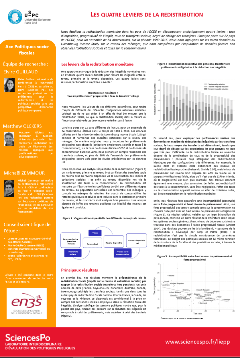 LIEPP works with the ‘Ecole Nationale Supérieur de Sécurité Sociale’ (EN3S) on a project entitled: “Redistributive Impact of the Socio-Fiscal Models of Social Welfare: An International Comparative Analysis". This project, led by Michaël Zemmour, is based on empirical data to analyze the contribution of the tax system structure, the shape and the volume of social benefits to reduce inequalities. This study presented an international comparison of social welfare models and revealed the characteristics of various redistributive patterns.