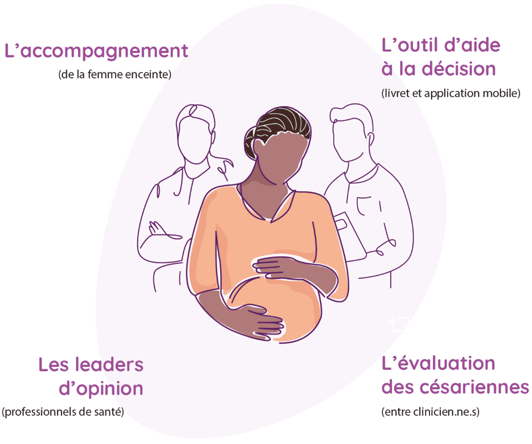 Pour cibler les patientes et leurs proches, nous avons développé un outil d’aide à la décision pour informer sur les avantages et les inconvénients de la césarienne par rapport à la voie basse. Cet outil, disponible en format papier ou comme application mobile à télécharger, décrit les risques encourus mais encourage aussi les femmes à évaluer leurs priorités pour l’accouchement. Cela permet notamment de préparer un dialogue éclairé entre le praticien et la patiente.