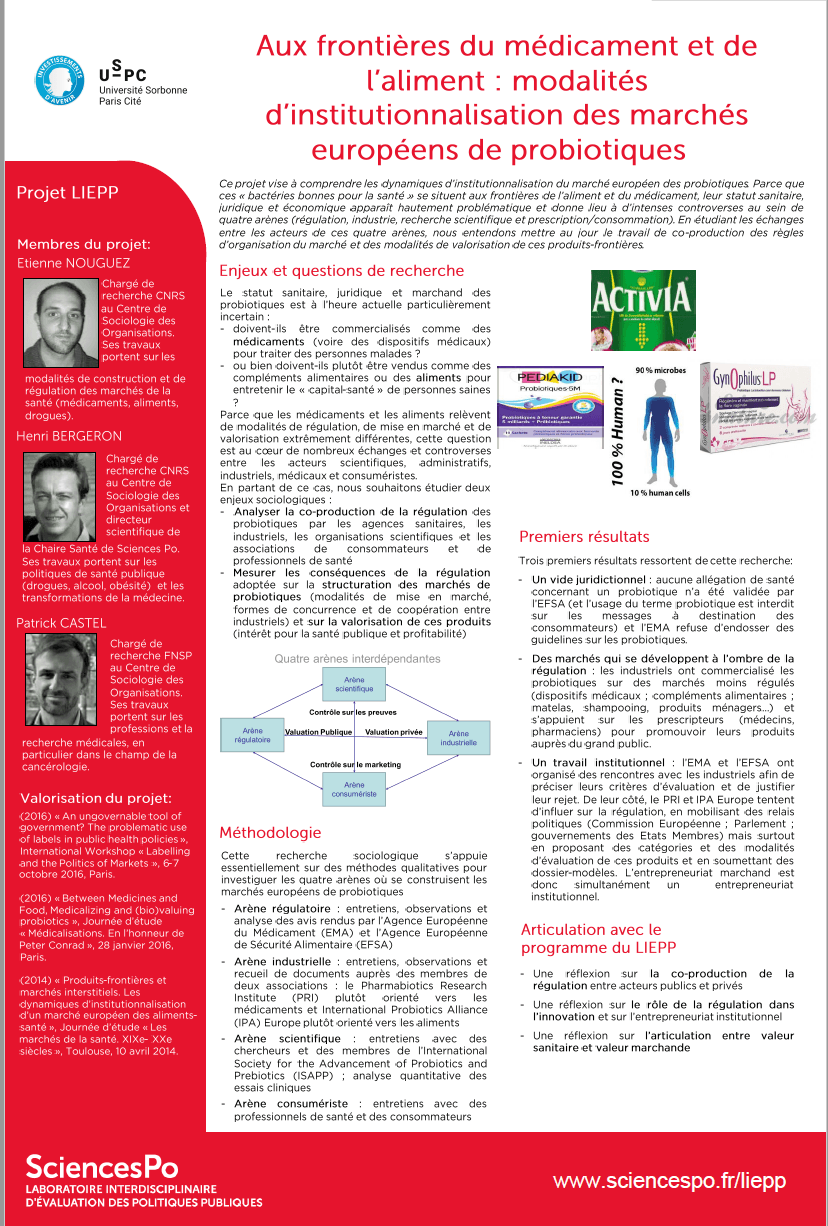 Etienne NOUGUEZ, Solenne CAROF, At the Boundaries of Food and Medicine: The Genesis and Transformation of the ‘Functional Food’ Markets in France and Europe LIEPP Working Paper n°90, September 2019.