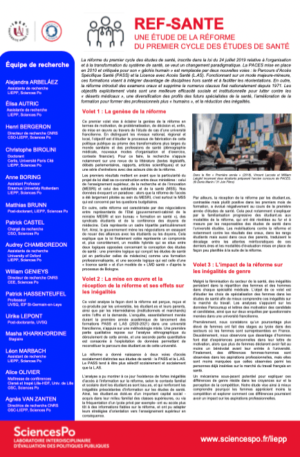 Accueil>Recherche>Projet>REF-SANTE - Une étude de la réforme du premier cycle des études de santé