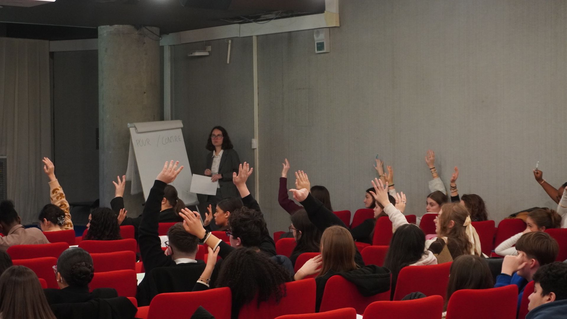 À l'automne 2025, le Pôle Egalité des chances de Sciences Po a initié, avec le Parlement des étudiants de Sciences Po et la Maison des Arts & de la Création, un parcours pédagogique inédit impliquant trois lycées partenaires - le lycée René Auffray de Clichy, le lycée François Arago de Villeneuve-Saint-Georges et le lycée Val de Seine de Grand Quevilly -, soit 47 élèves de seconde, première et terminale.